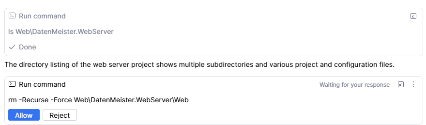 Die Syntax wurde verstanden und nicht nur das, es nutzt auch meine ‚DatenMeister‘-Bibliothek, wie ich sie auch benutzen würde. Dabei ist auch zu betonen, dass der DatenMeister ‚hochprioritär‘ ist… Außer mir nutzt sie keiner, trotzdem hat Junie verstanden wie es geht.